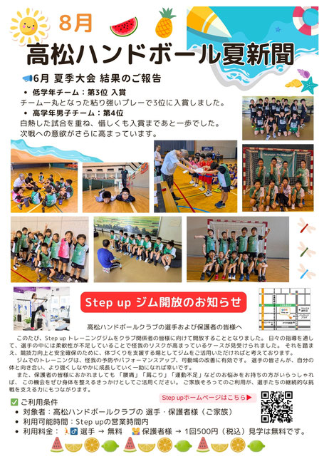 この度、2025年8月よりチームメインスポンサーでありますStep up様よりチーム会員様(小学生・卒業生中学生)に限りジムをフリーでご利用が可能となりました。